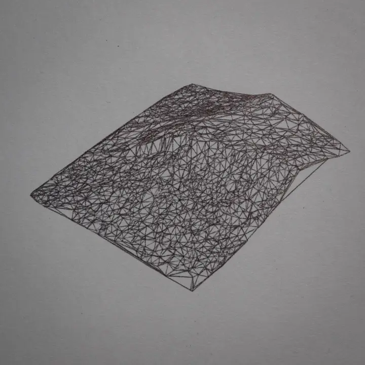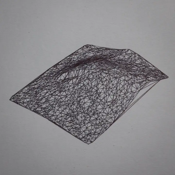 #penplotter #plotterart #generativeart #terrain #threejs #delaunay #triangulation #tesselation #triangles #shadows #lighting #rendering #isometric #landscape #linedrawing