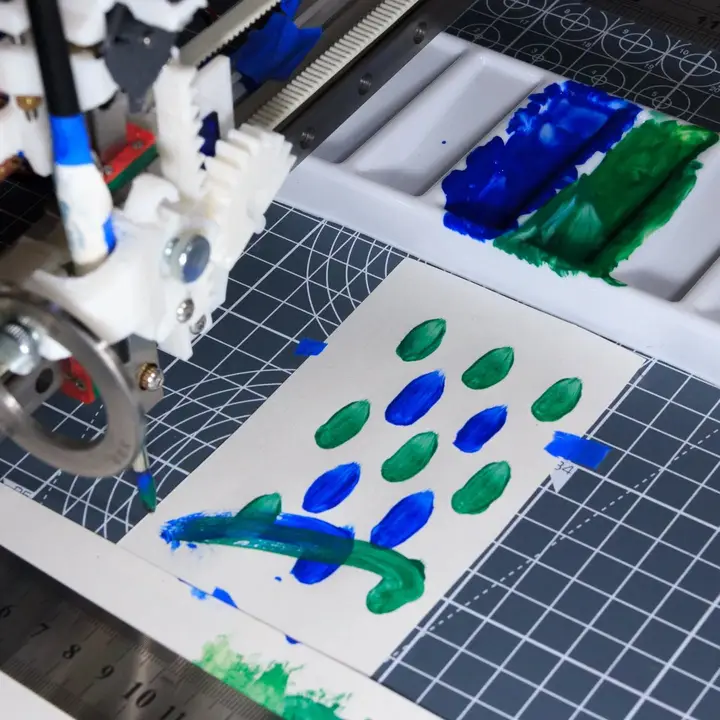I love creating new 3D printed attachments to teach my plotter new tricks. The mechanics of the rack and pinion worked surprisingly well on the second iteration, and should allow more granular control of the brush height and pressure and a wider range of motion. If I get round to actually adapting the software to it, that is. The first drawings here were made by manually editing the gcode to start the pen lift early and not wait for it to finish before painting the last segment of each drop so they line skills get thinner towards the top.