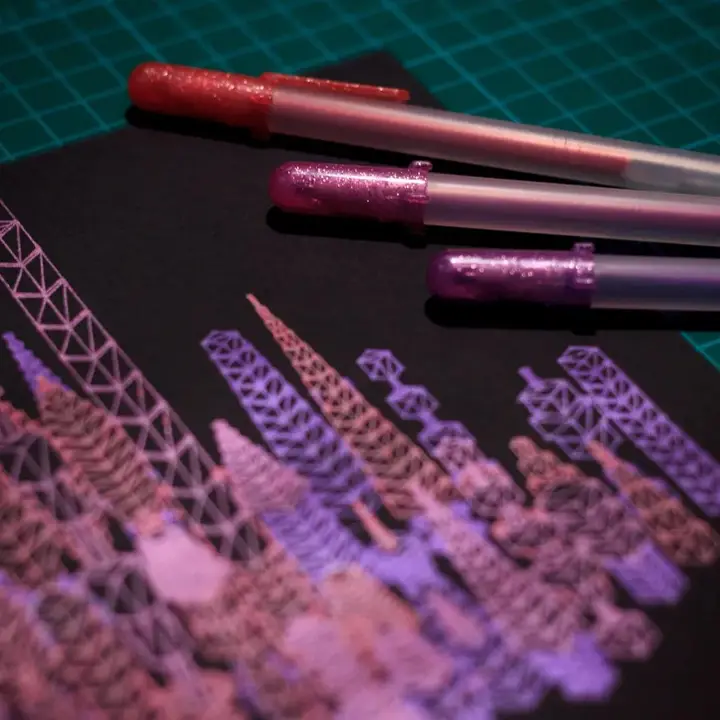 Pens: Sakura Gelly Roll Metallic, three colours, single pass